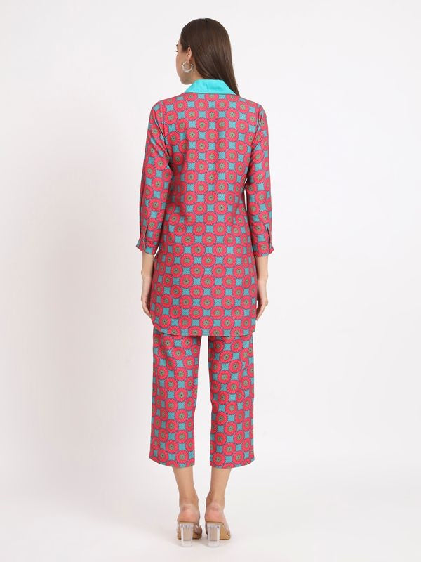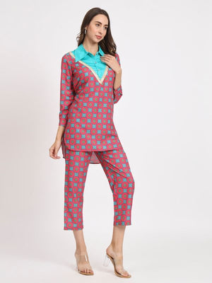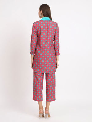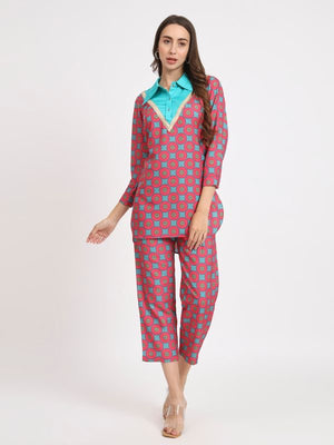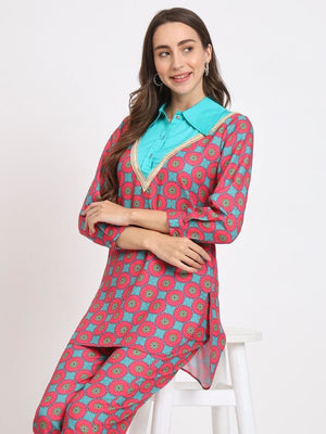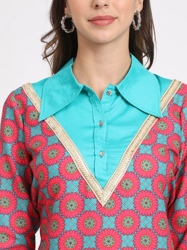 DESCRIPTION :Sets crafted with meticulous attention to detail, feature a unique half shirt look & delicate lace detailing on the neck, adding a touch of elegance to your ensemble.