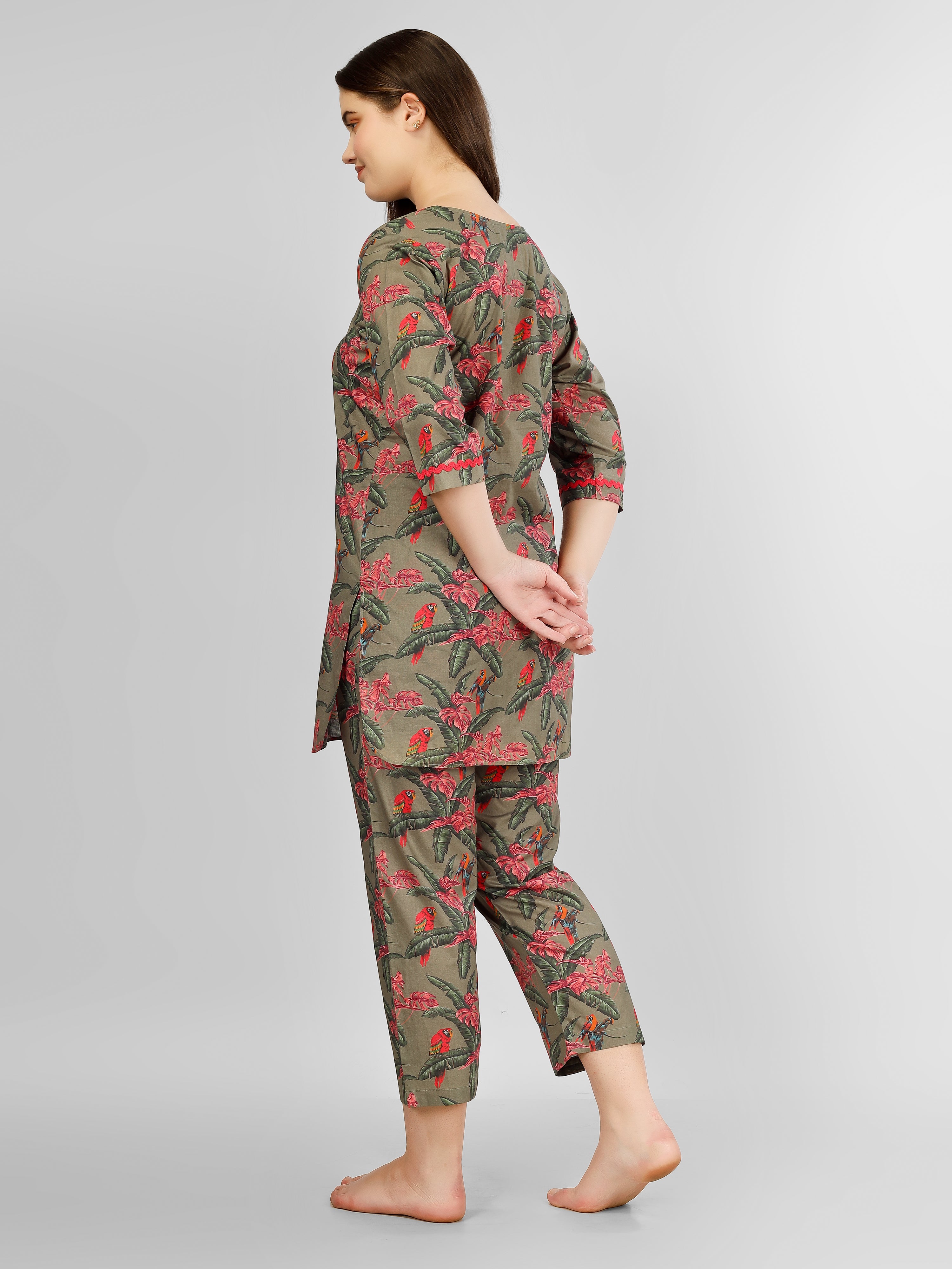 Transform your relaxation experience with our exquisite Loungewear collection! Crafted from 100% cotton, this luxurious ensemble offers the ultimate comfort for those lazy afternoons and cozy evenings at home. Featuring vibrant palm prints, you’ll feel a refreshing burst of nature while lounging in style.