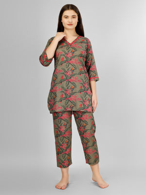 The kurti-style top is designed for a flattering fit, complemented by elasticated pajamas that provide the freedom to move effortlessly. Plus, the intricate lace detailing on the neck and sleeves adds a touch of elegance that elevates your loungewear game.
