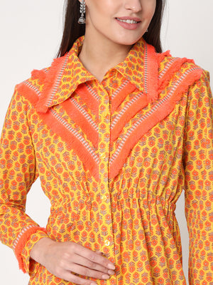 Front opening shirt with normal fitted pants and adjustable dori on waist to enhance the look.