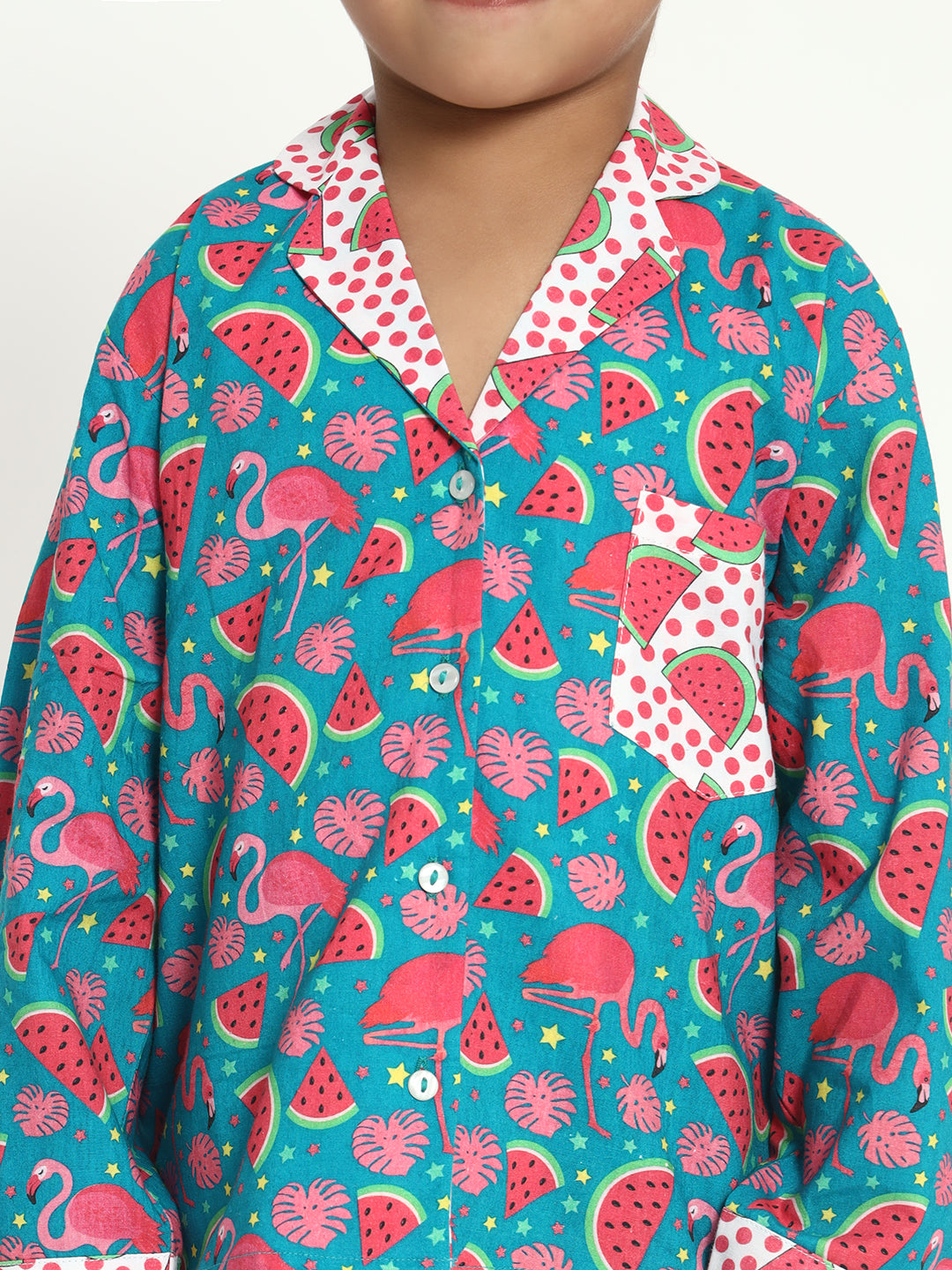 DESCRIPTION: Super soft premium cotton fabric with cool and colourful Flamingo print. Comfy button front top & loose straight leg PJ pant.