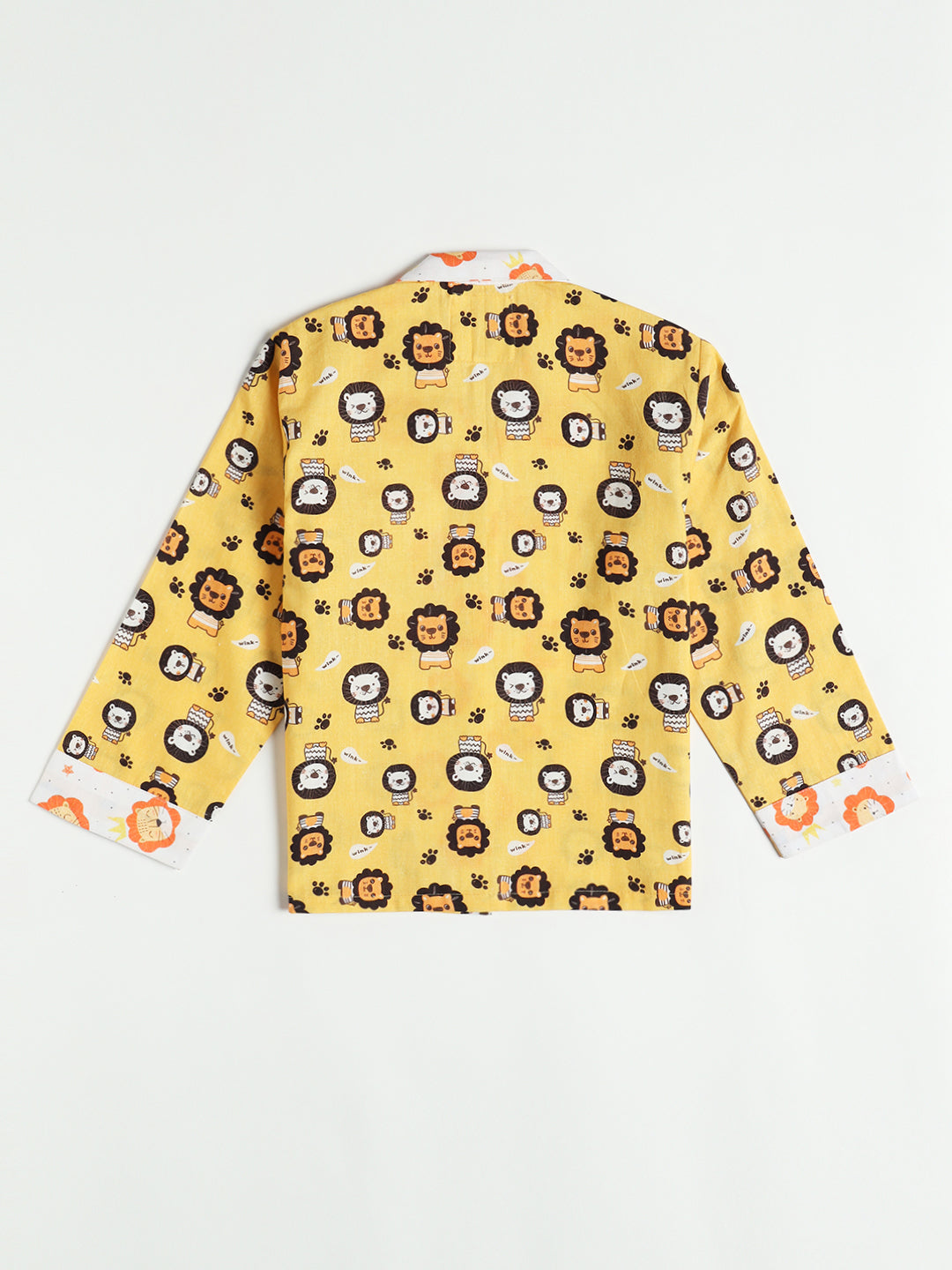 DESCRIPTION: Super soft premium cotton fabric with cool and colourful Lion print. Comfy button front top & loose straight leg PJ pant.