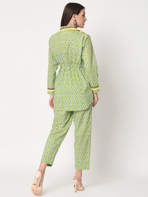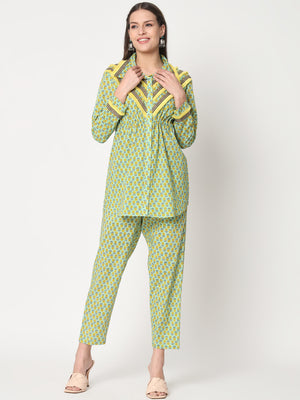 Front opening shirt with normal fitted pants and adjustable dori on waist to enhance the look.