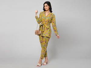 DESCRIPTION : Make a style statement with this stunning Co-ord set! Perfectly tailored and designed to the highest standards of quality, the fitted pants and matching belt will flatter your figure and showcase your unique sense of style without compromising on comfort.