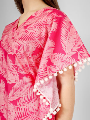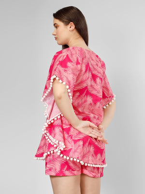 The delicate pom pom lace detailing adds an extra touch of charm, making this nightwear not only functional but also fabulously fashionable.The comfortable fit and stylish Kaftan design paired with shorts provide the perfect balance of elegance and ease, allowing you to lounge gracefully at home