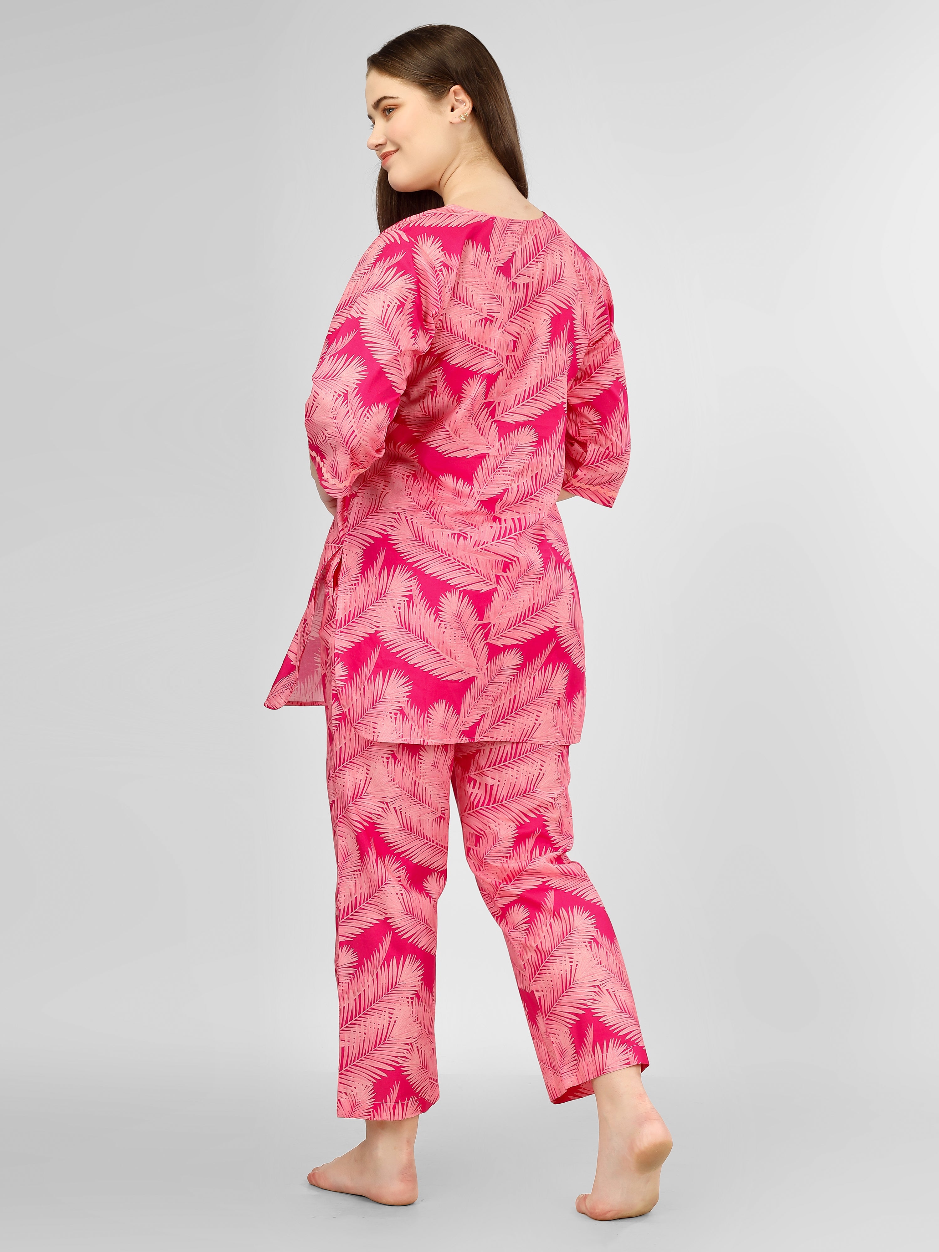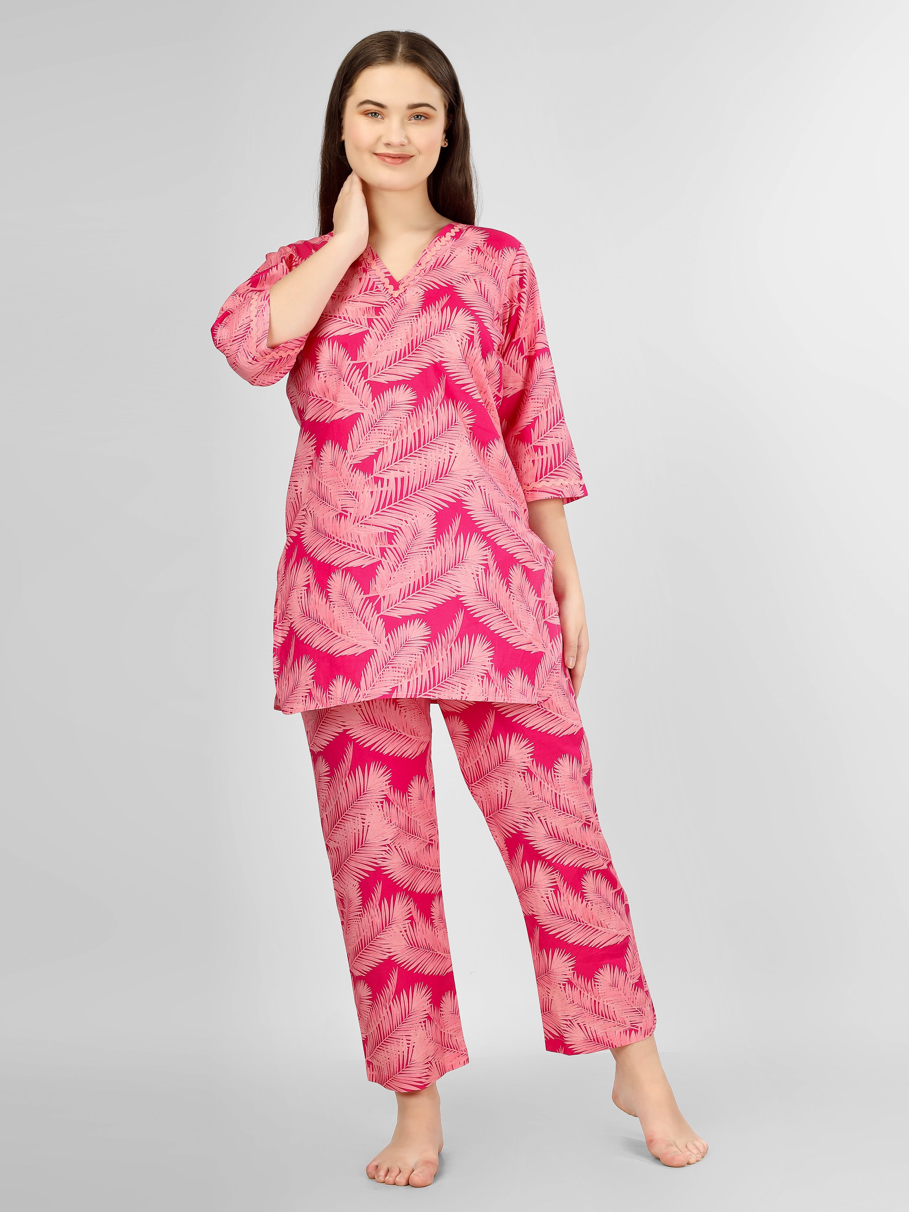 The kurti-style top is designed for a flattering fit, complemented by elasticated pajamas that provide the freedom to move effortlessly. Plus, the intricate lace detailing on the neck and sleeves adds a touch of elegance that elevates your loungewear game.