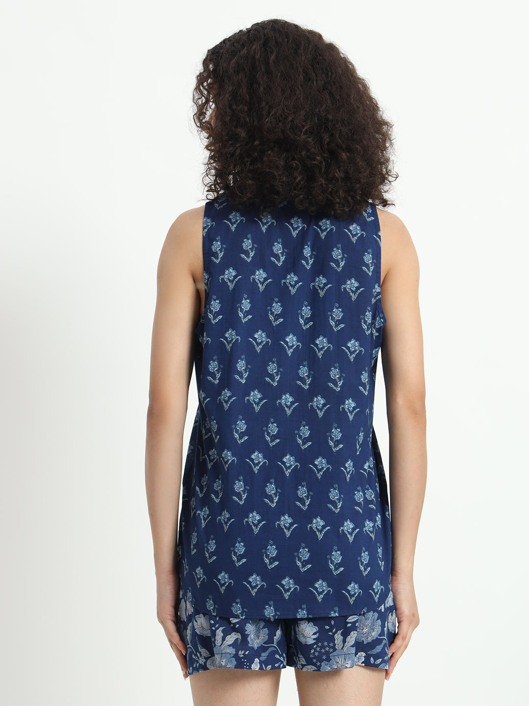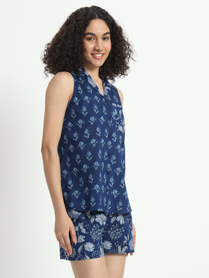 DESCRIPTION: Pure Cotton screen print crafted with the finest breathable fabrics made in comfortable front button open style to keep you cool and relaxed. Loose fit, sleeveless shirt with elasticated shorts.