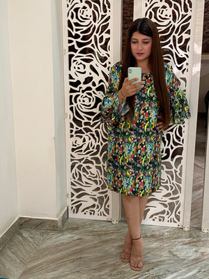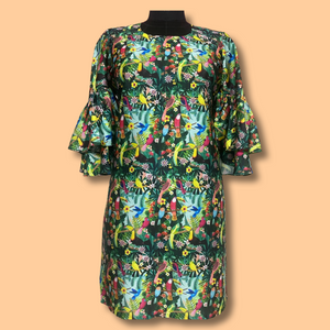 Tropical Rainforest Printed Satin Dress