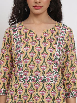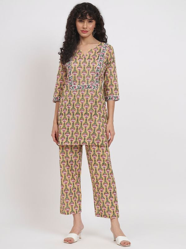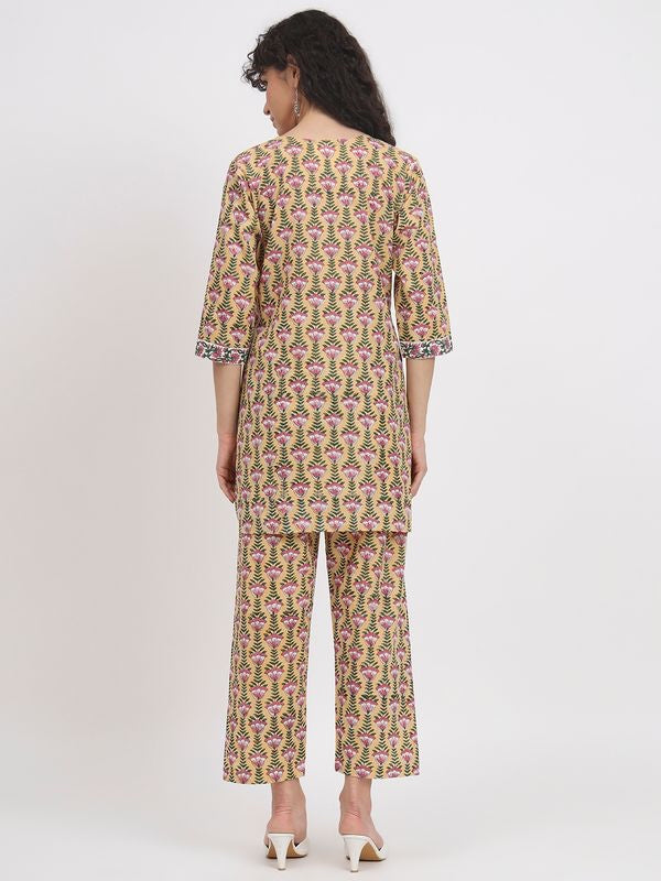 DESCRIPTION: Pure Cotton fabric hand blocked print made in comfortable kurti style Loose fit with 3/4th sleeves & full length pajama.